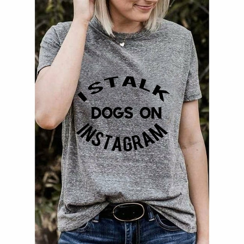 Our "I Stalk Dogs on Instagram" design is BY FAR our most popular quote on Instagram! So, why not make it into a shirt? Our design is created with VINYL on a crew neck tee. These shirts are super-soft, with a comfortable, loose fit. Perfect for yourself or a gift!